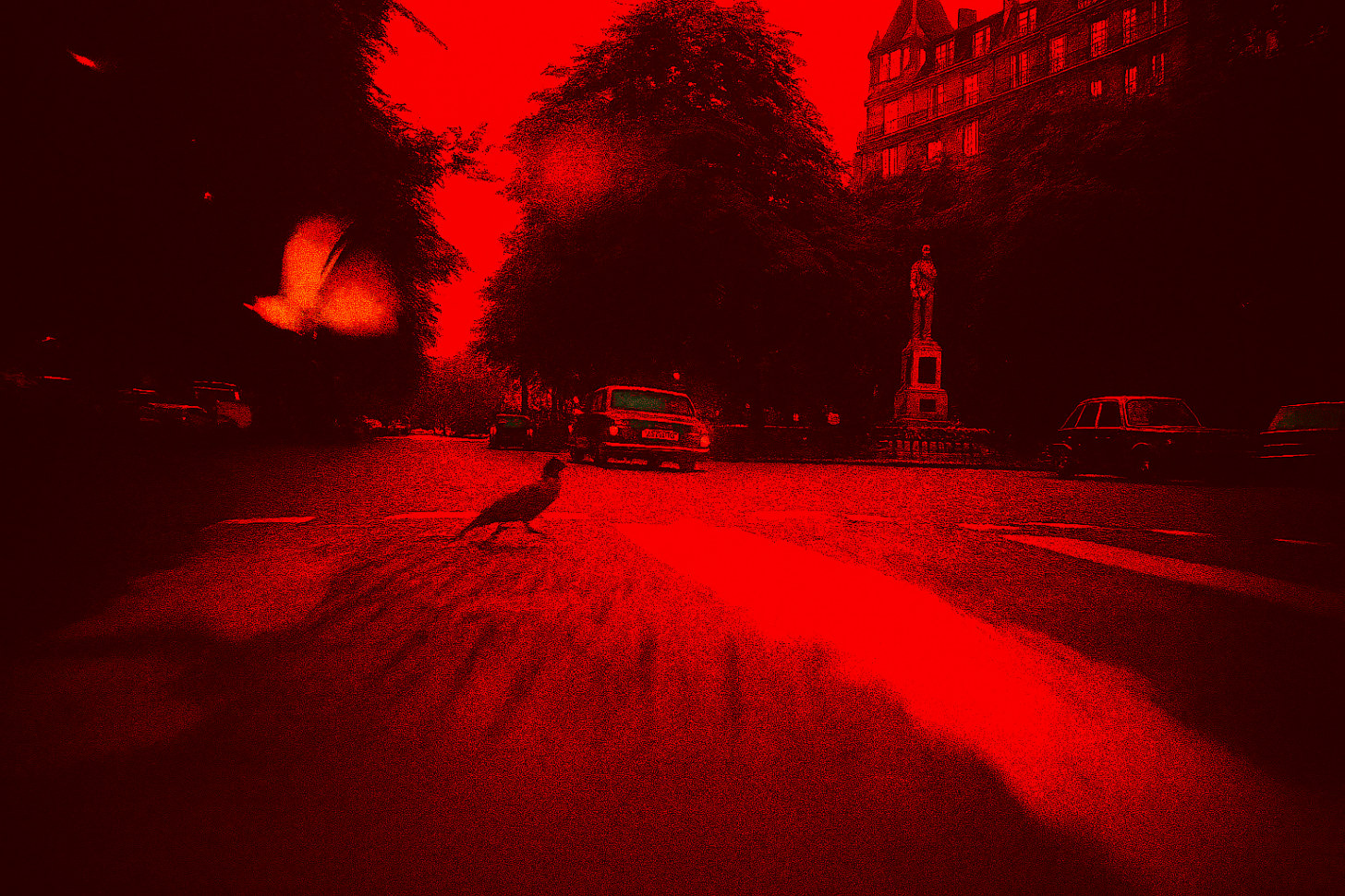Wieder zurück in Limburg. Drei Tage war ich verschollen, in diesem verdammten Dérive. Drei ganze Tage. Soviel zu Plänen und deren gelingen. Nun also zurück in Limburg. Zwischen Stadthalle und Rathaus haben sie einen Brunnen eingeklemmt, Pusteblume nennen sie ihn. Ich sitze auf einer Bank. Eine Taube auf dem Brunnenrand, eine, die man vergessen hat zu erwürgen. Neben mir ein Junge, er schaut auf sein Handy. Ein Video. Ich erkenne es. Die Avenue Foch. Die Fluchtlinien. Der Sound eines Motors.